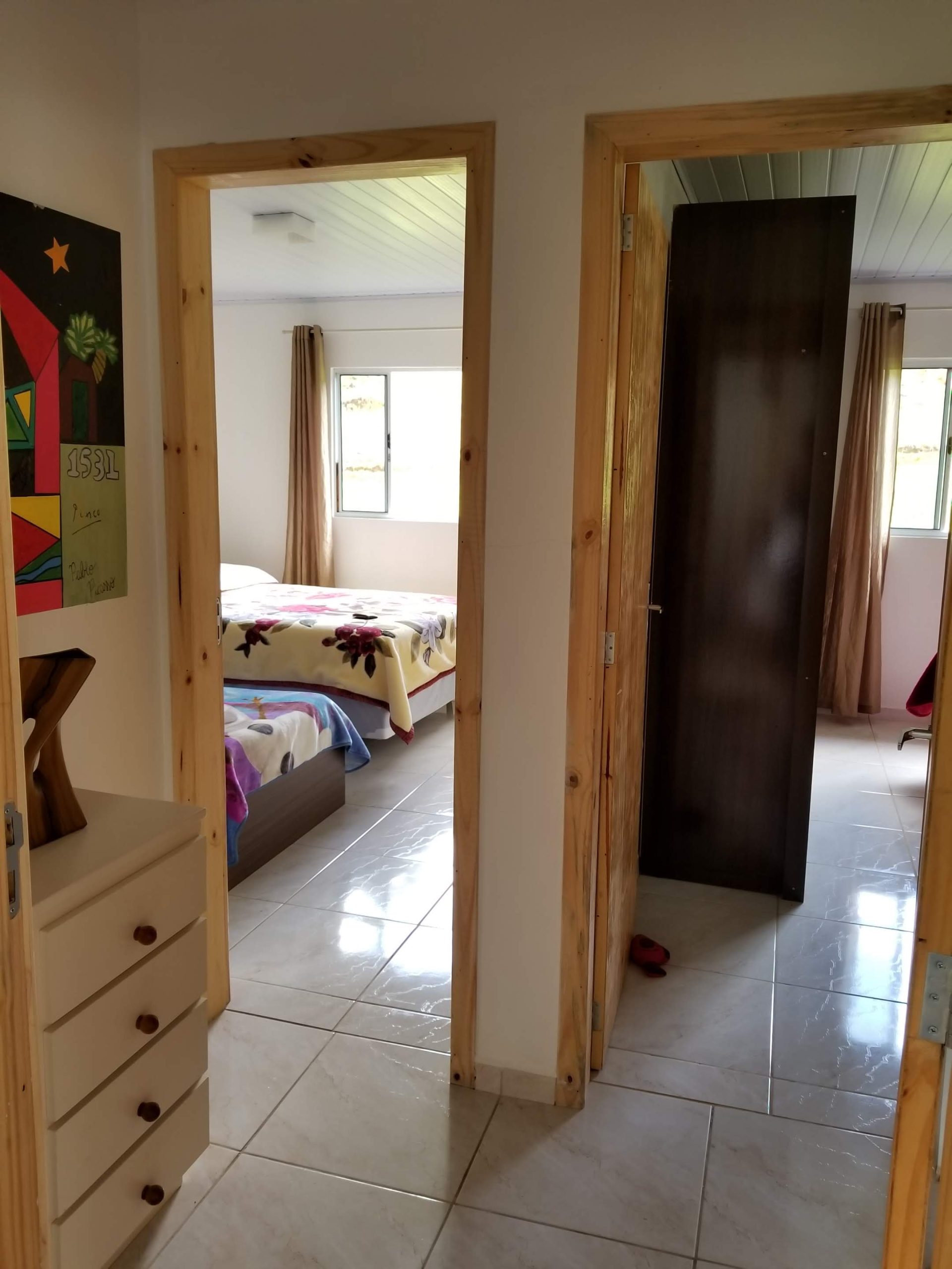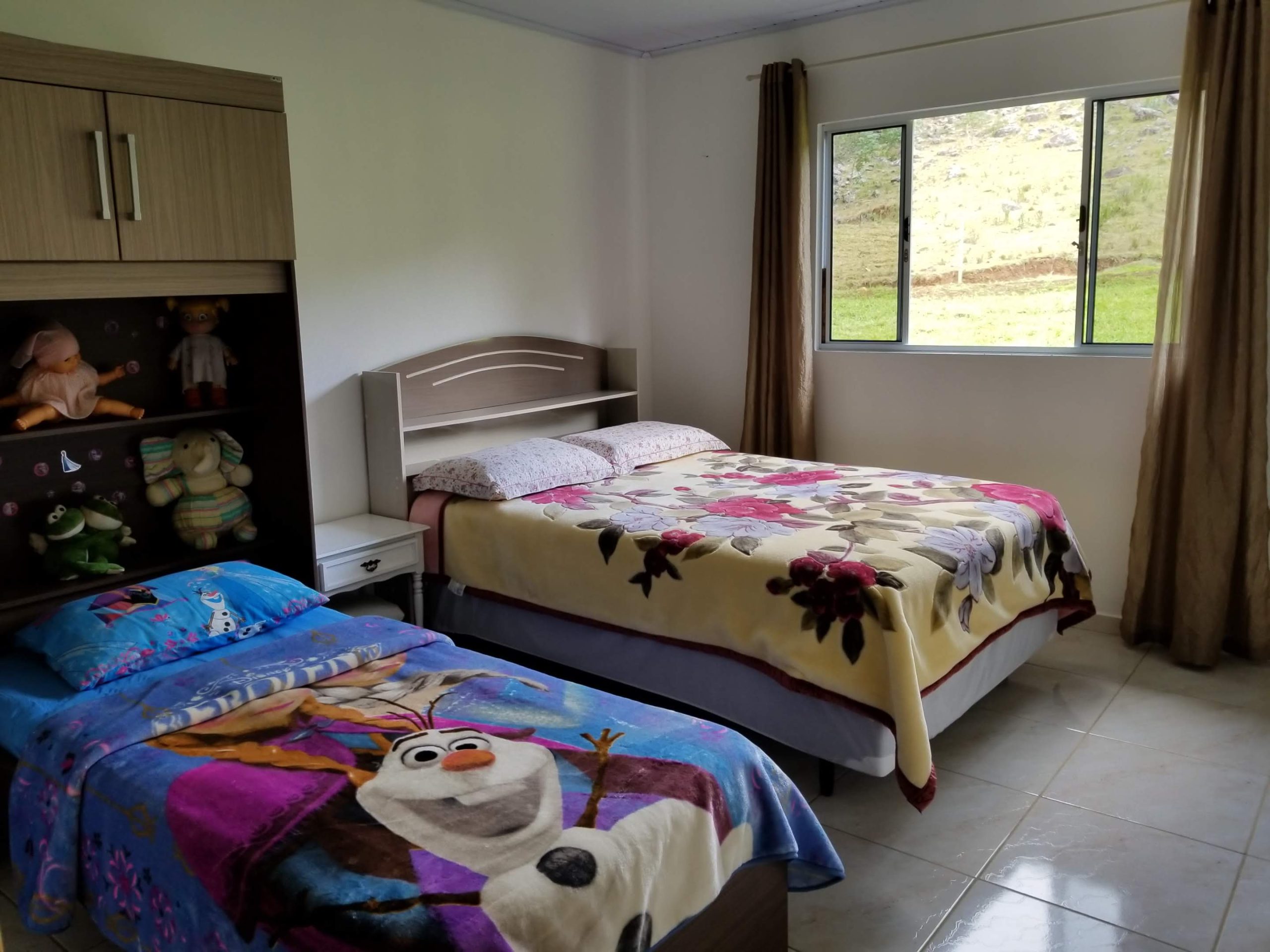 Os hóspedes podem desfrutar da beleza do entorno a partir da varanda térrea, contemplando o verde exuberante que cerca a propriedade. Esta hospedagem é perfeita para famílias, oferecendo quartos espaçosos e confortáveis, onde todos podem se sentir em casa.